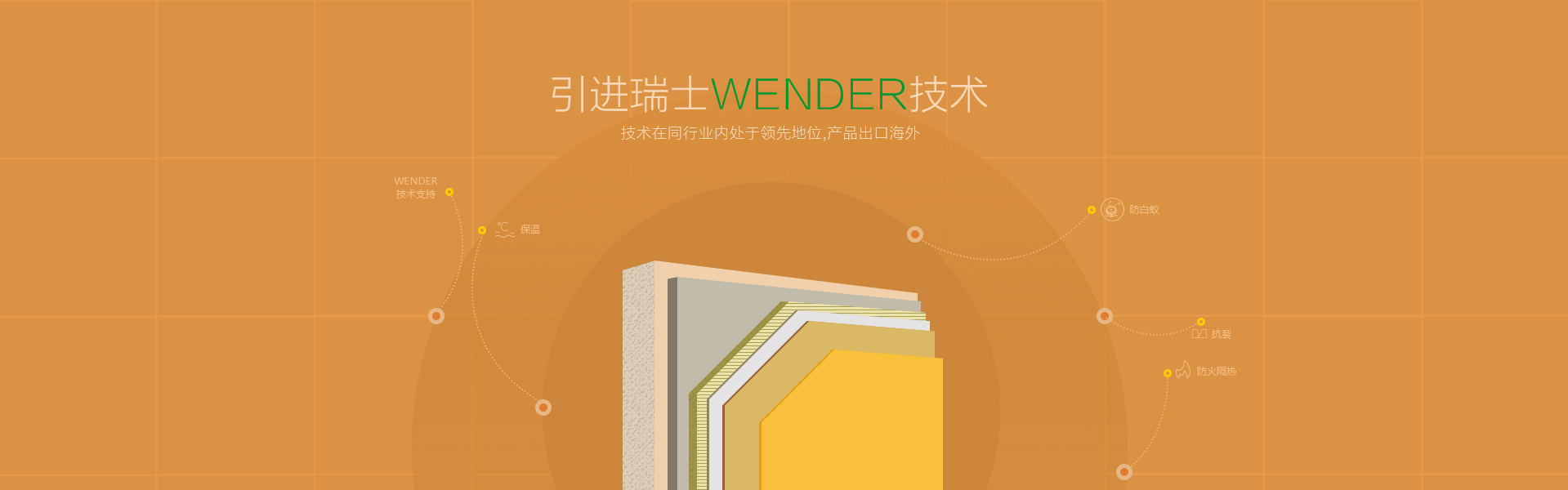 威耐得為適應(yīng)中國(guó)節(jié)約能源的需要,自行研制開(kāi)發(fā)的外墻保溫節(jié)能系列產(chǎn)品 安徽威耐得新型建材有限公司為適應(yīng)中國(guó)節(jié)約能源的需要,于2005年引進(jìn)瑞士WENDER技術(shù),竭力開(kāi)發(fā)適合中國(guó)市場(chǎng)的外墻外保溫系統(tǒng),目前公司依靠WENDER的技術(shù)支持,自行研制、開(kāi)發(fā)的外墻保溫節(jié)能系列產(chǎn)品,集防火隔熱、保溫、抗裂、防水、抗白蟻等多種功能于一體,能夠充分滿(mǎn)足中國(guó)各種氣候條件的建筑節(jié)能的要求,為安徽省綠色建材產(chǎn)品,其技術(shù)在同行業(yè)內(nèi)處于領(lǐng)先地位,產(chǎn)品出口海外。 防火 隔熱 保溫 抗裂 防水 抗白蟻 咨詢(xún)我們了解產(chǎn)品