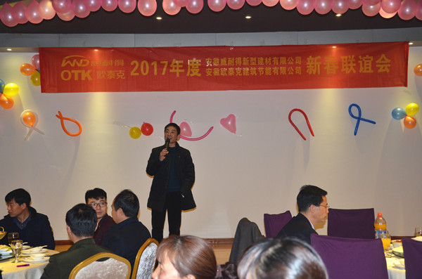 公司聚餐活動(dòng)首先分別由歐泰克執(zhí)行總裁朱總、公司總經(jīng)理劉總分別致新年賀詞,在大家掌聲中公司聚餐活動(dòng)正式拉開(kāi)了帷幕。大家舉杯共同祝愿公司發(fā)展越來(lái)越來(lái)好,越來(lái)越強(qiáng)大。并相互提前送出新年的祝福。