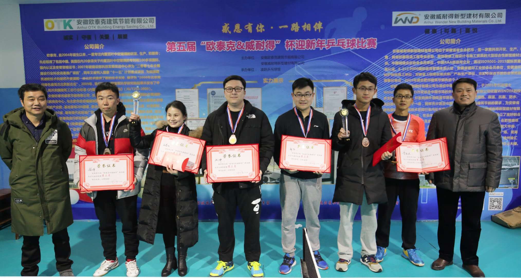 2018年12月30日,由安徽威耐得新型建材有限公司、安徽歐泰克建筑節(jié)能有限公司主辦的第五屆“歐泰克&威耐得”杯迎新年乒乓球比賽在凌躍乒乓球館隆重舉行,來自多個單位的乒乓球運動愛好者踴躍參加了本次比賽。